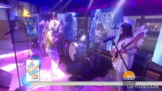 Las presentadoras, Sheinelle Jones y Billy Bush (cuyo claim to fame es haber sido el interlocutor de Donald Trump cuando soltó aquella aberración del "grab them by the pussy", tras lo cual tuvo que dimitir del Today), presumiblemente han visto los ensayos de la actuación, así que saben lo que va a pasar; Bush, con 50% befa y 50% mofa, apunta: “si tenéis la sensación de que se va a liar parda aquí, yo también la tengo” Sin embargo, esto hace que sea más incomprensible cuando anticipan que Feldman ejecutará unos pasos de baile a lo Michael Jackson, porque, según Corey, “crecieron bailando juntos”.
